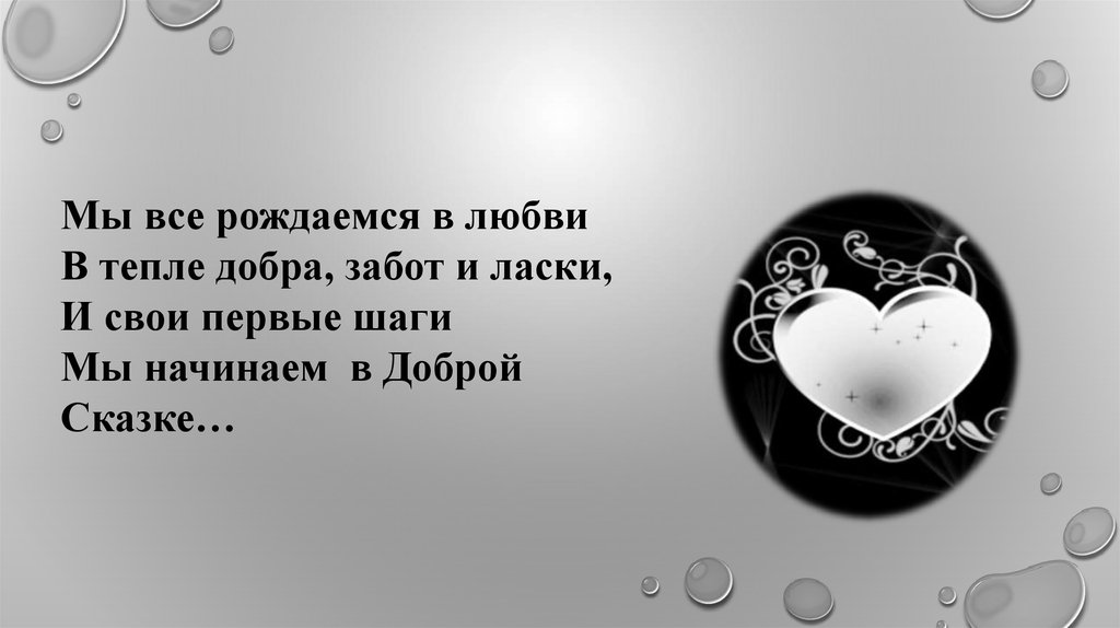 Мы все рождаемся в любвиВ тепле добра, забот и ласки,