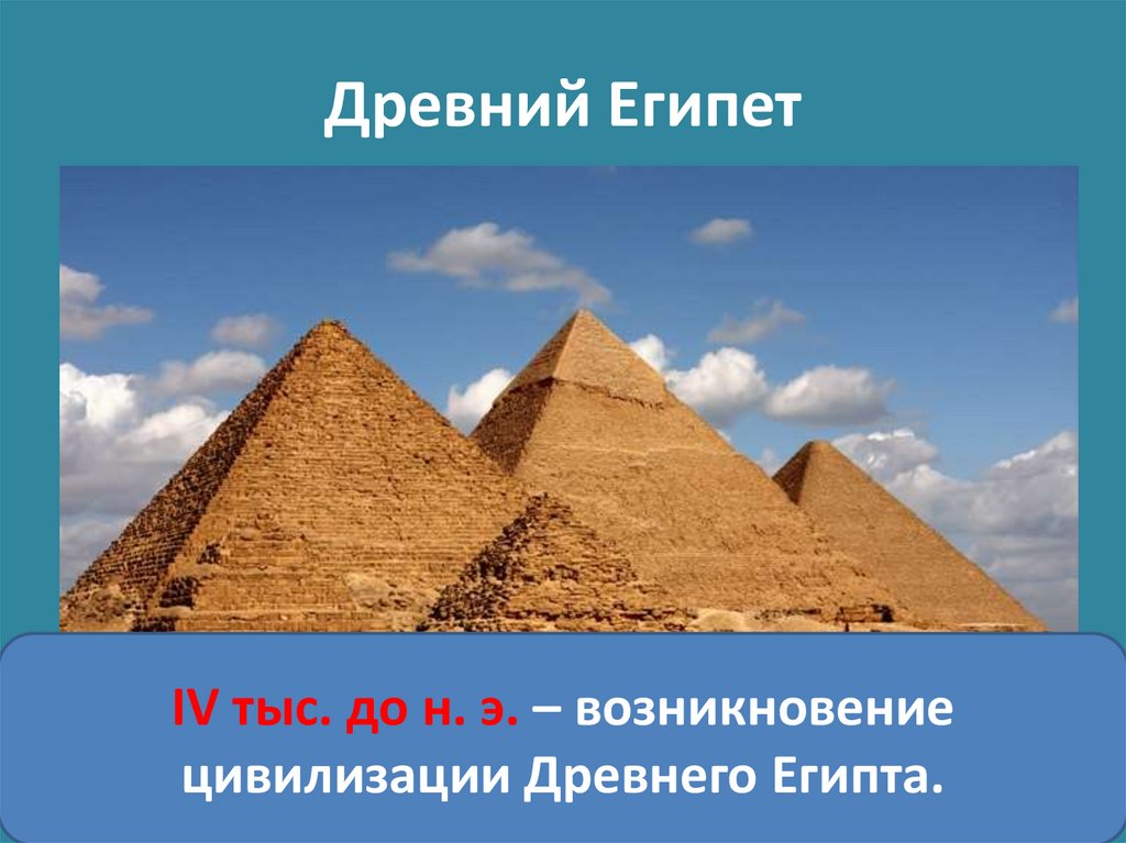 Древний Египет IV тыс. до н. э. – возникновение цивилизации Древнего Египта