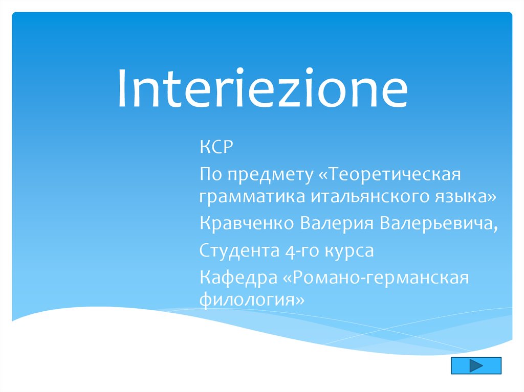 interiezioni proprie (Собственно междометия) – «ah», «ehi»,«oh» и др.