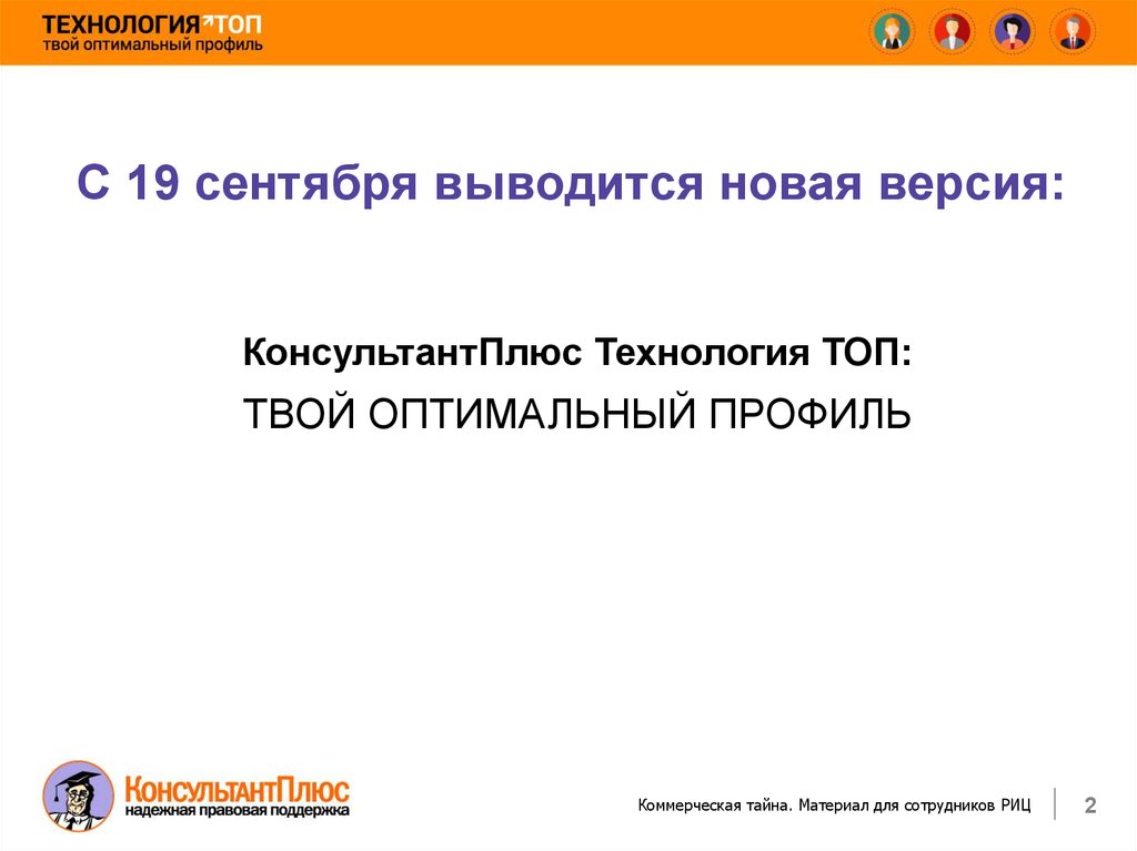 С 19 сентября выводится новая версия:КонсультантПлюс Технология ТОП: