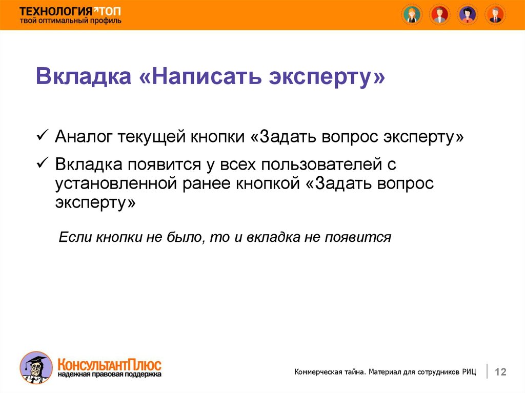 Вкладка «Написать эксперту»Аналог текущей кнопки «Задать вопрос эксперту»