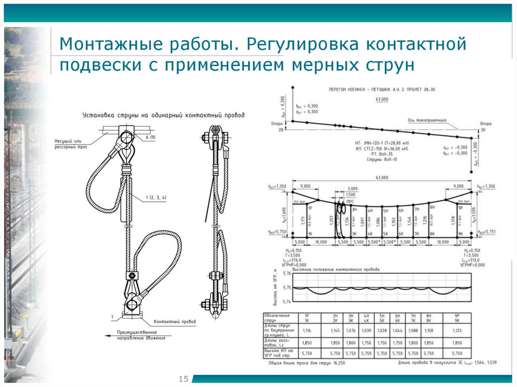 Монтажные работы. Регулировка контактнойподвески с применением мерных струн