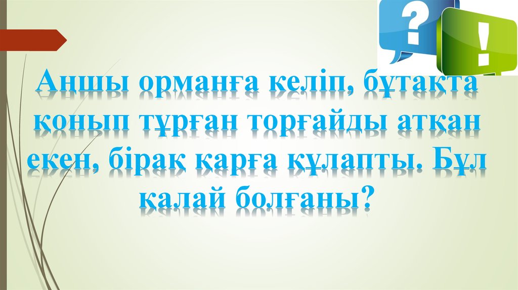 Аңшы орманға келіп, бұтақтақонып тұрған торғайды атқан