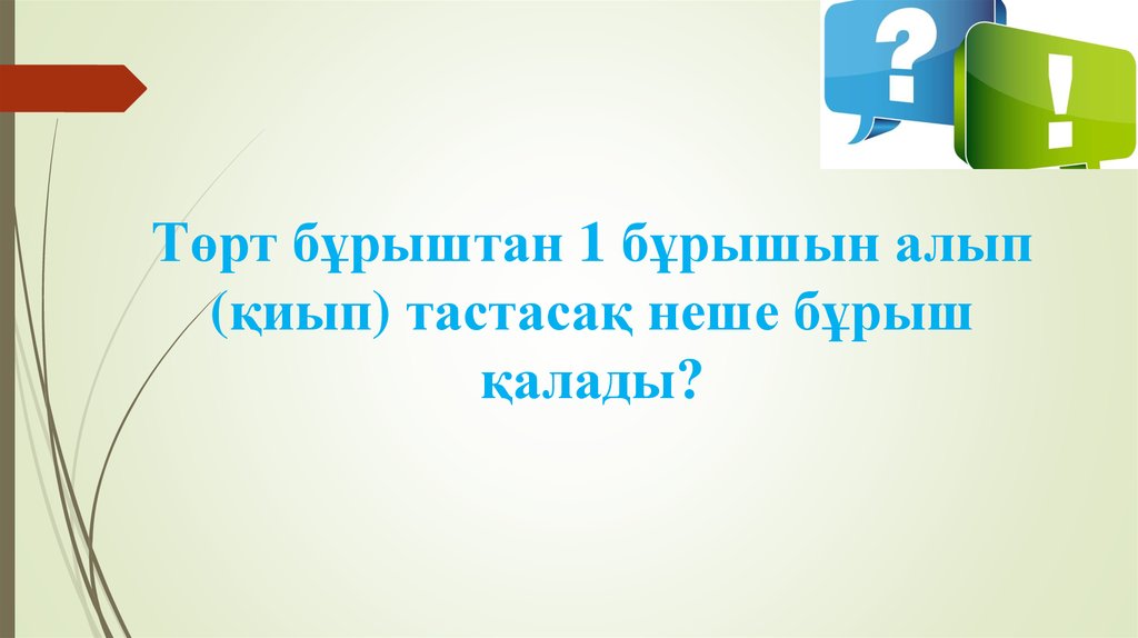 Төрт бұрыштан 1 бұрышын алып(қиып) тастасақ неше бұрыш