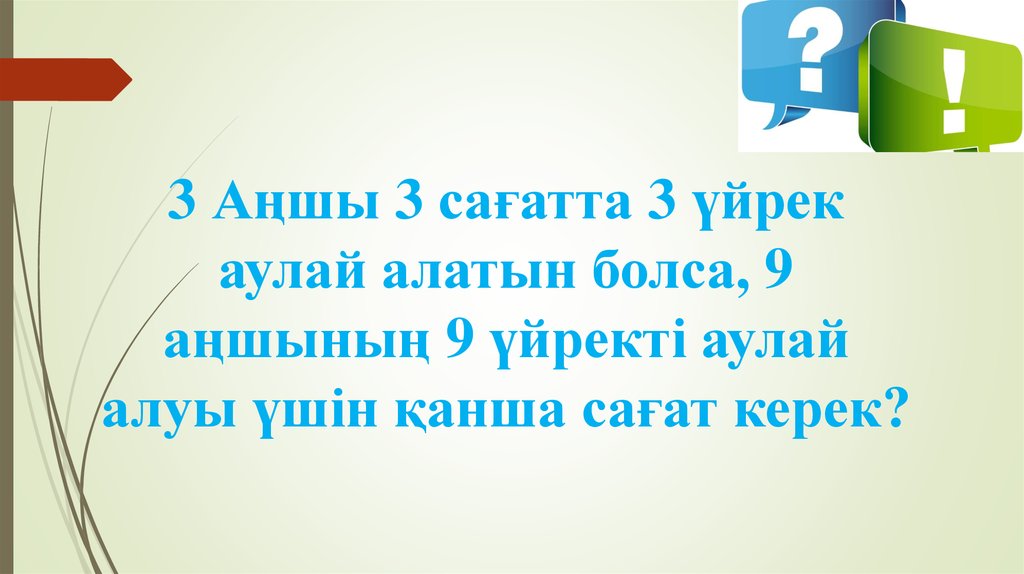 3 Аңшы 3 сағатта 3 үйрекаулай алатын болса, 9