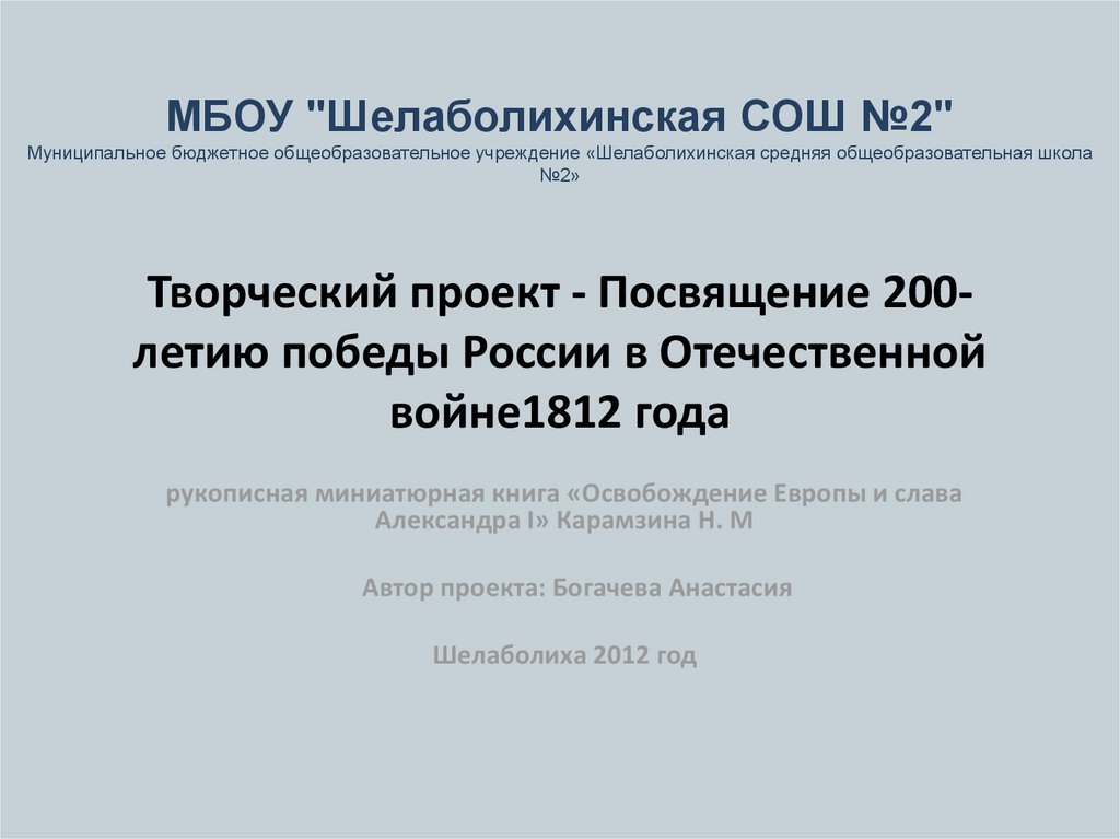 МБОУ "Шелаболихинская СОШ №2"Муниципальное бюджетное общеобразовательное учреждение «Шелаболихинская средняя общеобразовательная школа