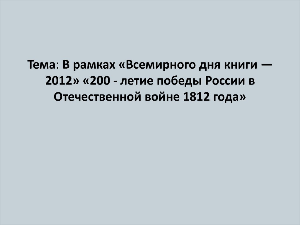 Тема: В рамках «Всемирного дня книги —2012» «200 - летие победы России в