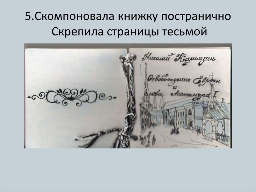 5.Скомпоновала книжку постраничноСкрепила страницы тесьмой
