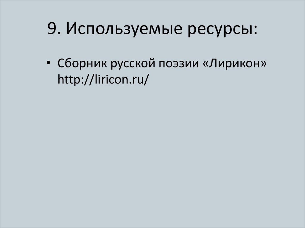 9. Используемые ресурсы:• Сборник русской поэзии «Лирикон»