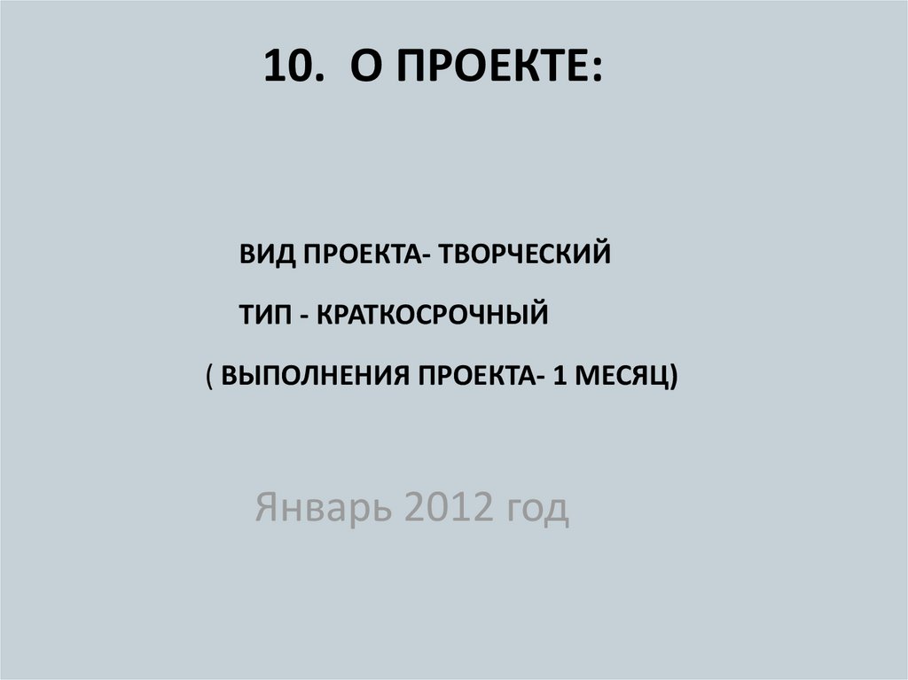10. О ПРОЕКТЕ:ВИД ПРОЕКТА- ТВОРЧЕСКИЙ