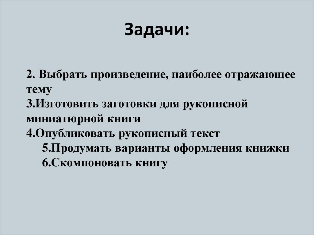 Проблема: изготовление рукописнойминиатюрной книги по произведениям,