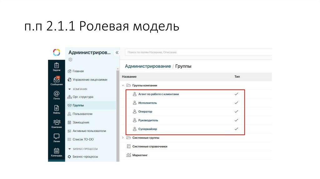 п.п 2.1.1 Ролевая модель3.