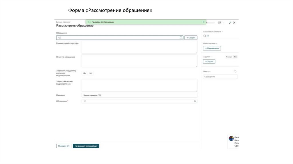 Форма «Рассмотрение обращения»12.