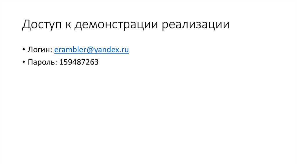 Доступ к демонстрации реализации• Логин: erambler@yandex.ru