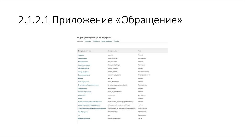 2.1.2.2 Приложение «Тип обращения»Заполнено данными по ТЗ