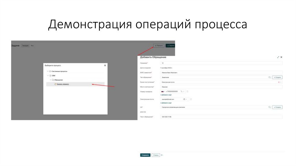 Демонстрация операций процесса10.