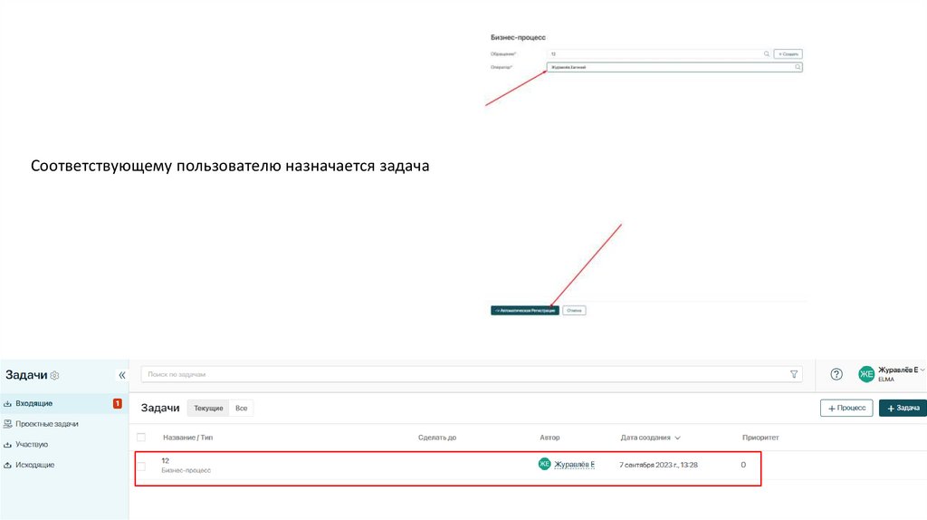 Соответствующему пользователю назначается задача11.