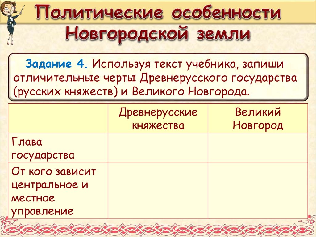 Задание 4. Используя текст учебника, запишиотличительные черты Древнерусского государства
