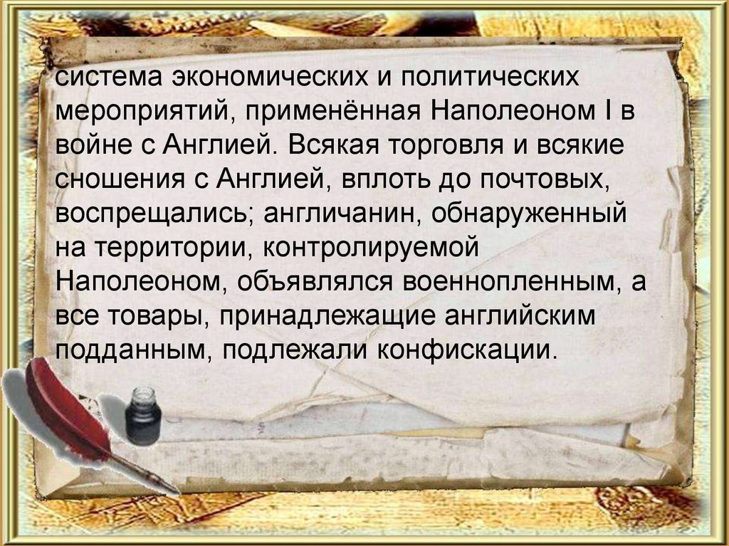 система экономических и политическихмероприятий, применённая Наполеоном I в