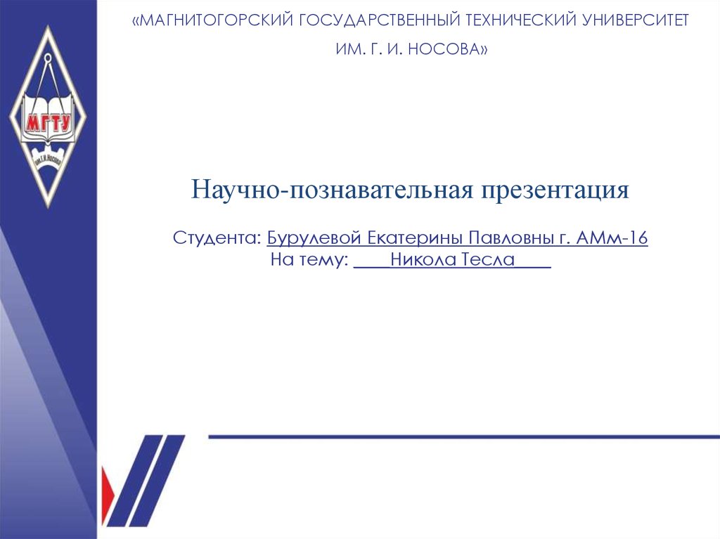 «МАГНИТОГОРСКИЙ ГОСУДАРСТВЕННЫЙ ТЕХНИЧЕСКИЙ УНИВЕРСИТЕТИМ. Г. И. НОСОВА»