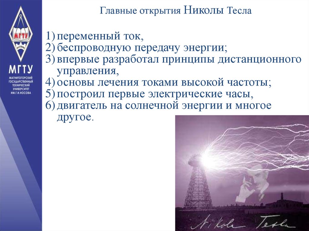 великих и загадочных личностей XX века. Он стал инженеромэлектротехником, который изобрел индукционный двигатель с
