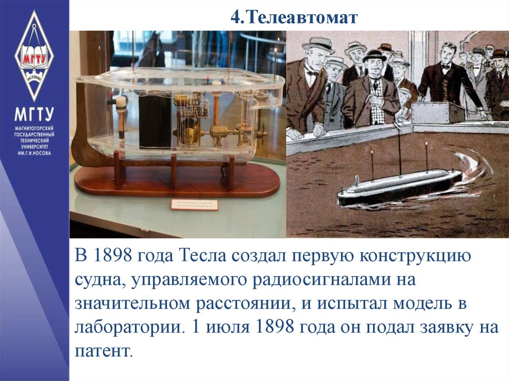 4.ТелеавтоматВ 1898 года Тесла создал первую конструкцию