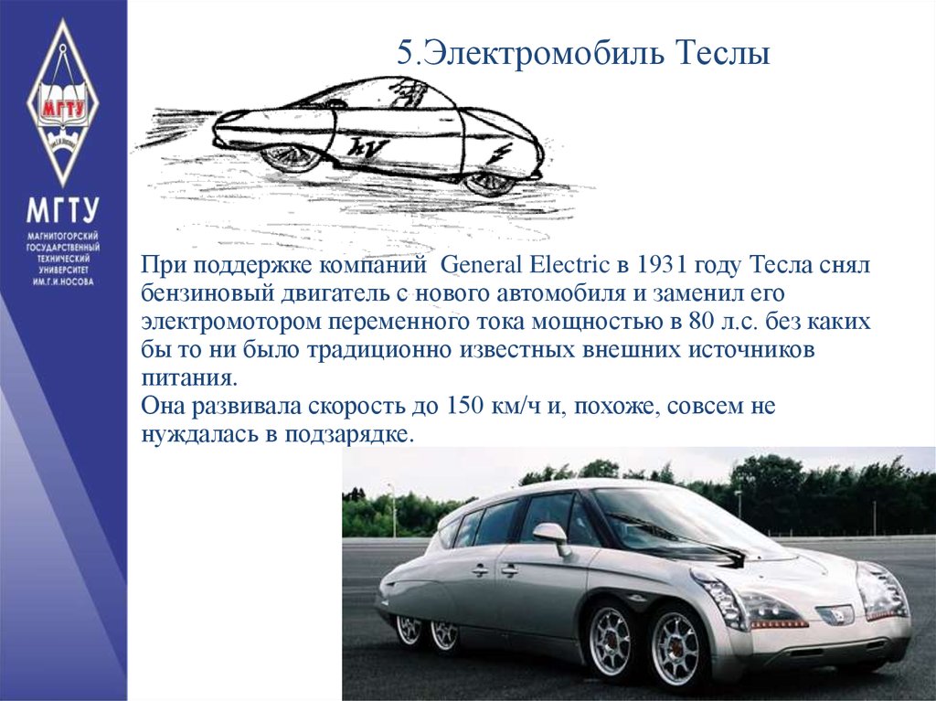 5.Электромобиль ТеслыПри поддержке компаний General Electric в 1931 году Тесла снял
