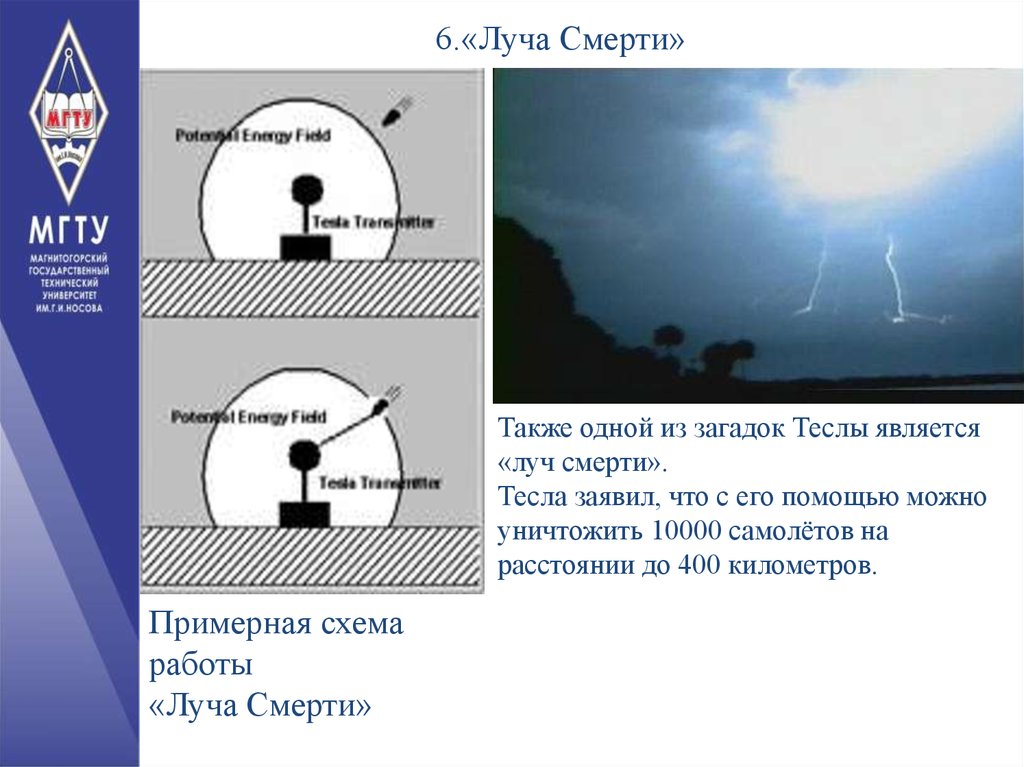 6.«Луча Смерти»Также одной из загадок Теслы является