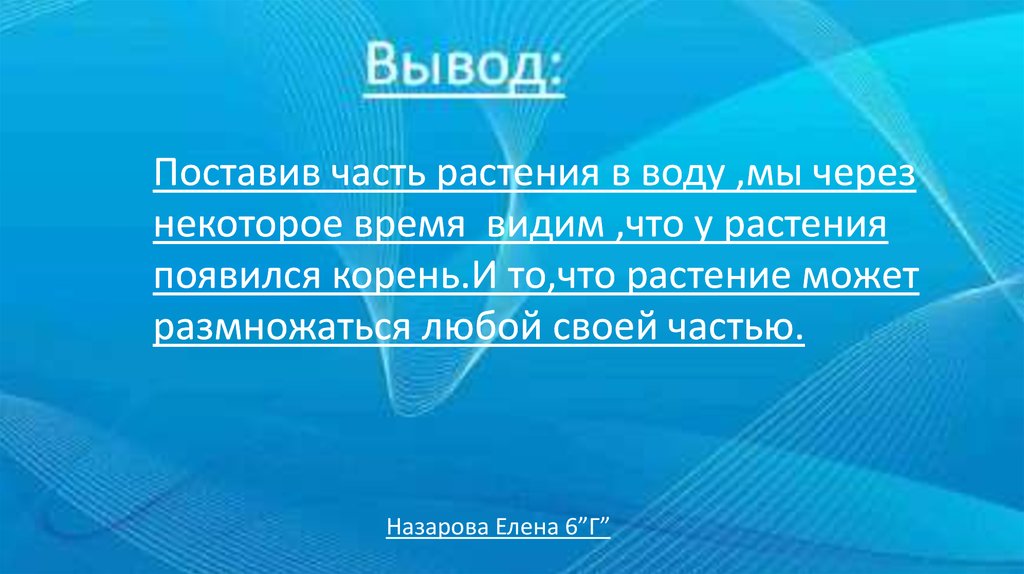 Поставив часть растения в воду ,мы черезнекоторое время видим ,что у растения