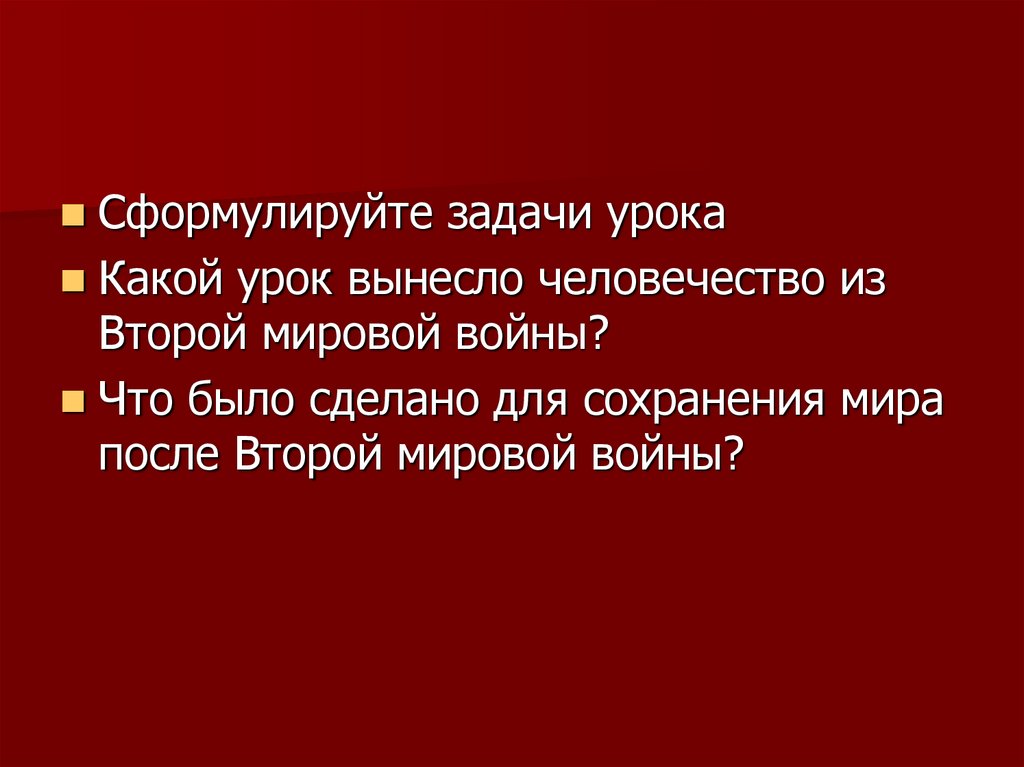 Сформулируйте задачи урокаКакой урок вынесло человечество из
