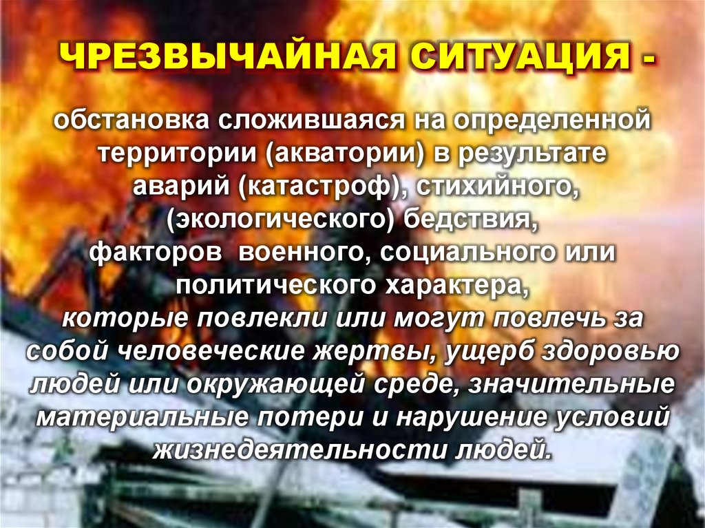 ЧРЕЗВЫЧАЙНАЯ СИТУАЦИЯ обстановка сложившаяся на определеннойтерритории (акватории) в результате