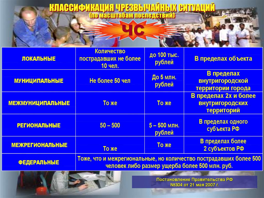 КЛАССИФИКАЦИЯ ЧРЕЗВЫЧАЙНЫХ СИТУАЦИЙ(по масштабам последствий)