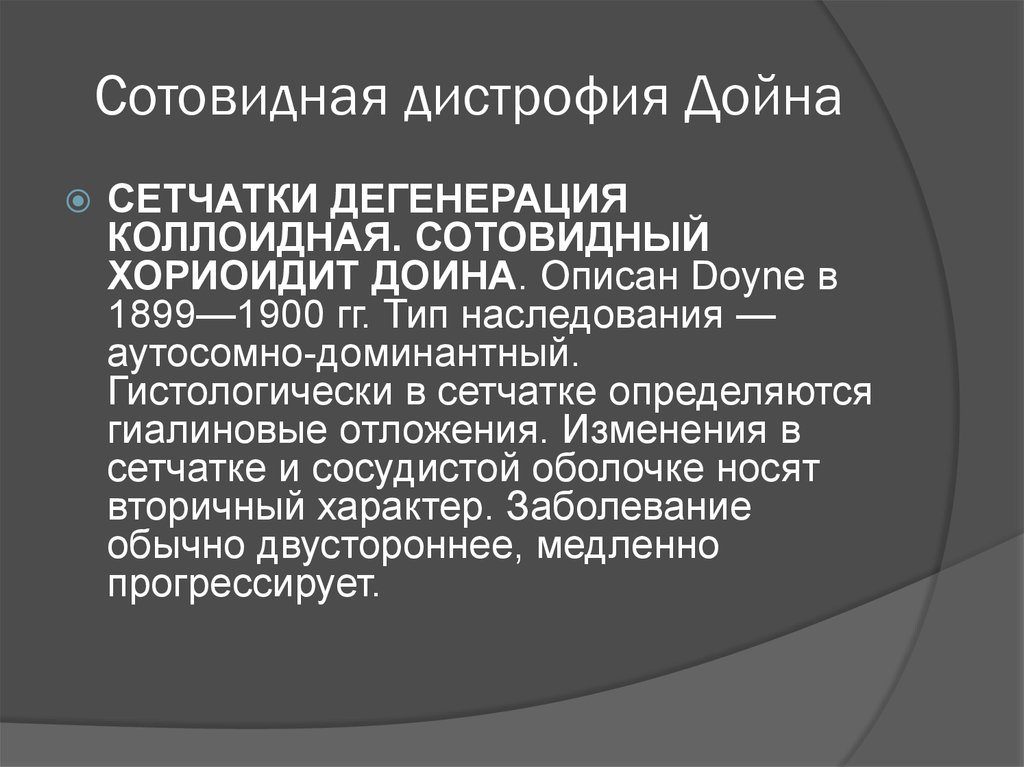 1. Сотовидная дистрофия Дойна