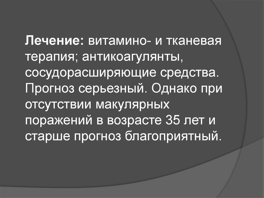 Лечение: витамино- и тканеваятерапия; антикоагулянты,