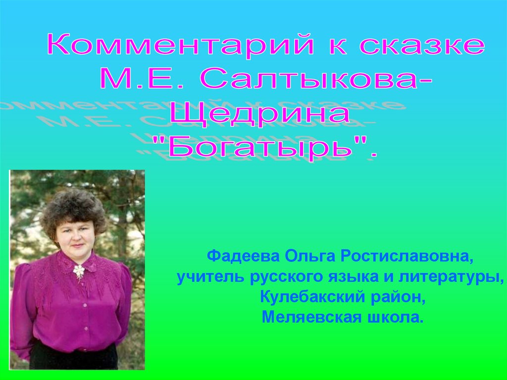 Фадеева Ольга Ростиславовна,учитель русского языка и литературы,