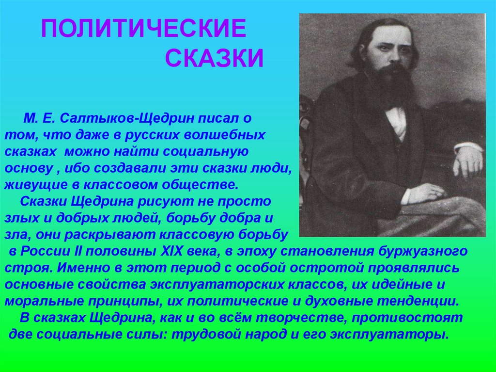 В сказках Щедрина, как и во всём творчестве, противостоят