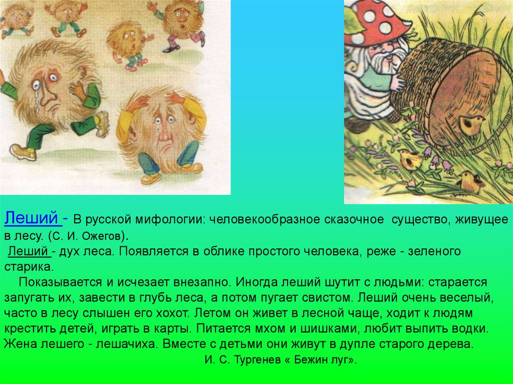 Леший - В русской мифологии: человекообразное сказочноесущество, живущее
