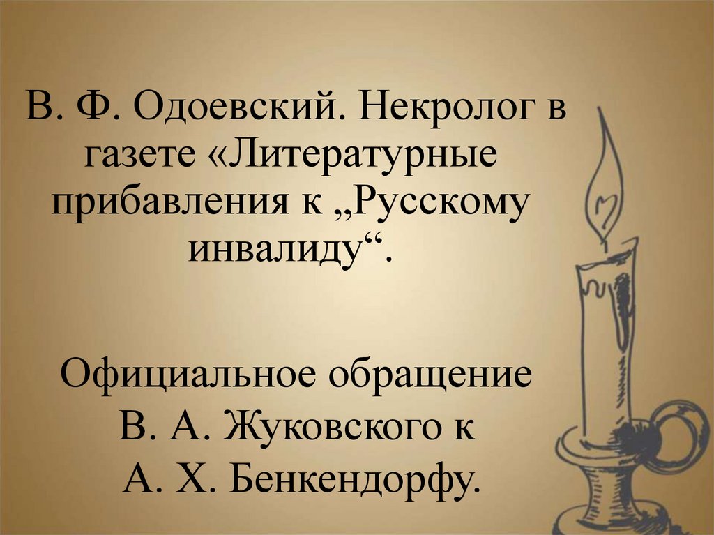 В. Ф. Одоевский. Некролог вгазете «Литературные