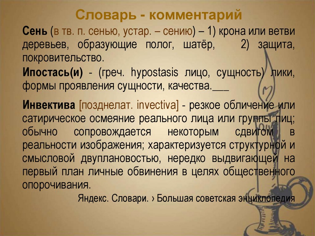 Словарь - комментарийСень (в тв. п. сенью, устар. – сению) – 1) крона или ветви
