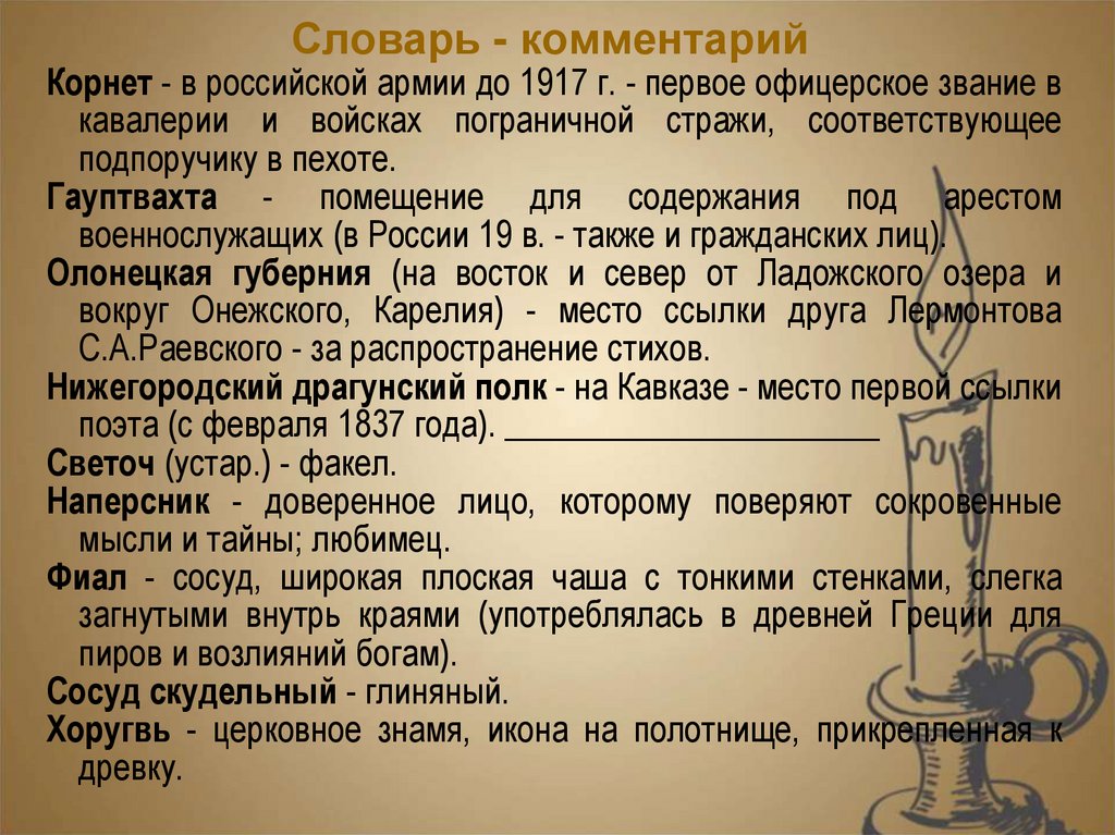 Словарь - комментарийКорнет - в российской армии до 1917 г. - первое офицерское звание в