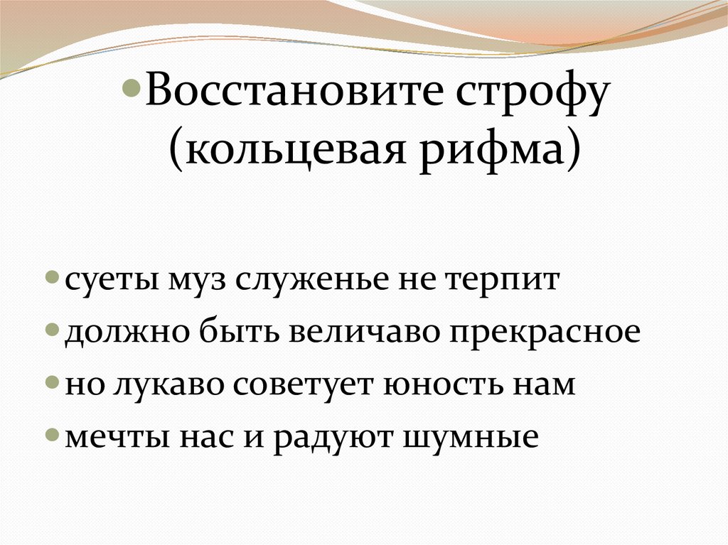 Восстановите строфу(кольцевая рифма)