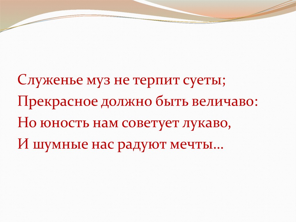 Служенье муз не терпит суеты;Прекрасное должно быть величаво:
