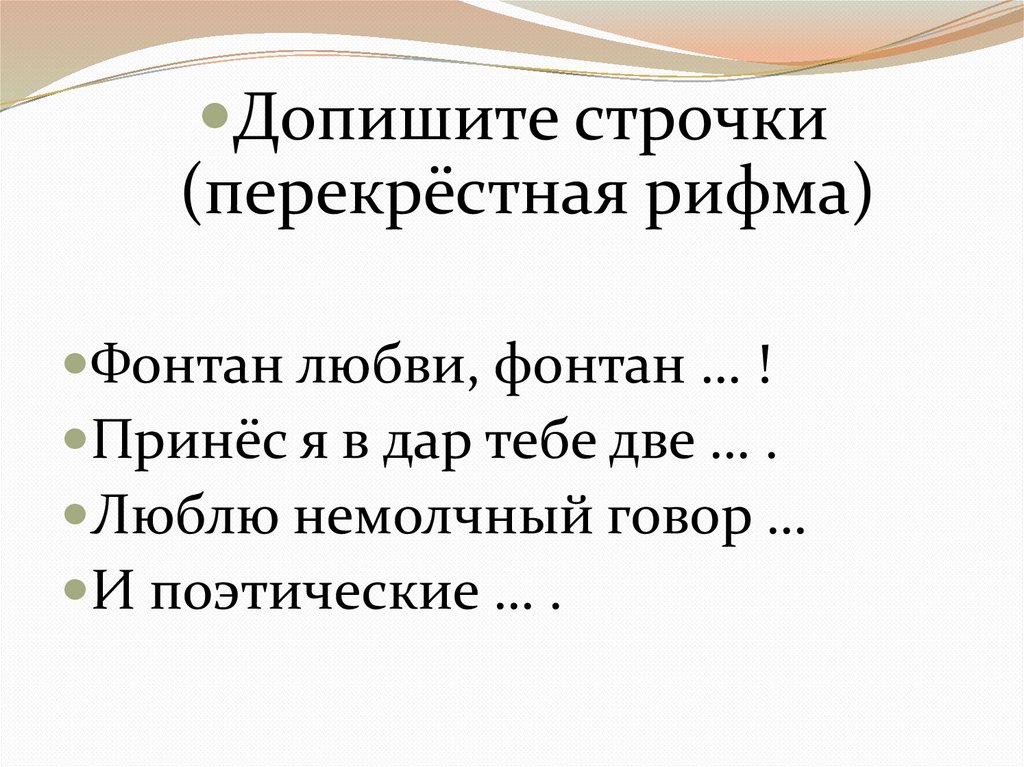 Допишите строчки(перекрёстная рифма)