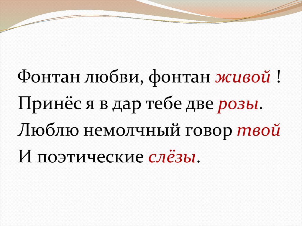 Фонтан любви, фонтан живой !Принёс я в дар тебе две розы.
