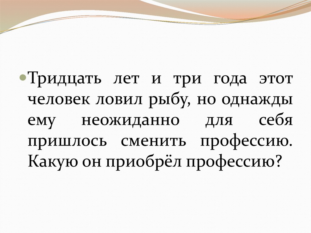 Тридцать лет и три года этотчеловек ловил рыбу, но однажды