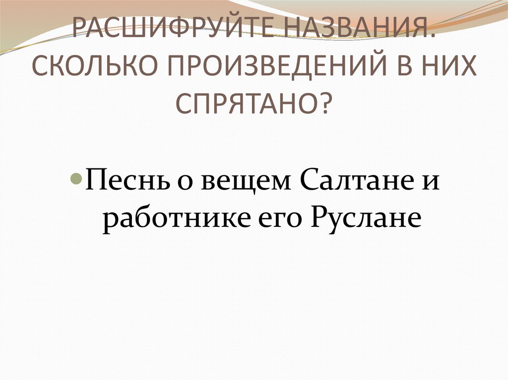 РАСШИФРУЙТЕ НАЗВАНИЯ.СКОЛЬКО ПРОИЗВЕДЕНИЙ В НИХ