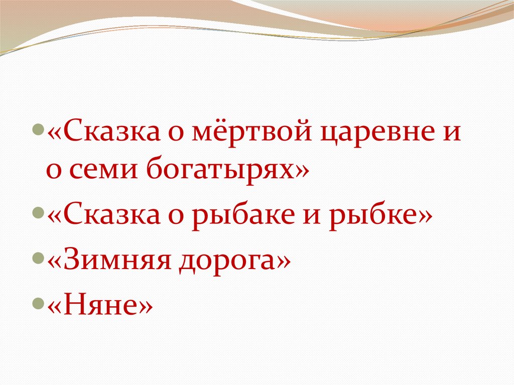 «Песнь о вещем Олеге»«Сказка о царе Салтане, о сыне его