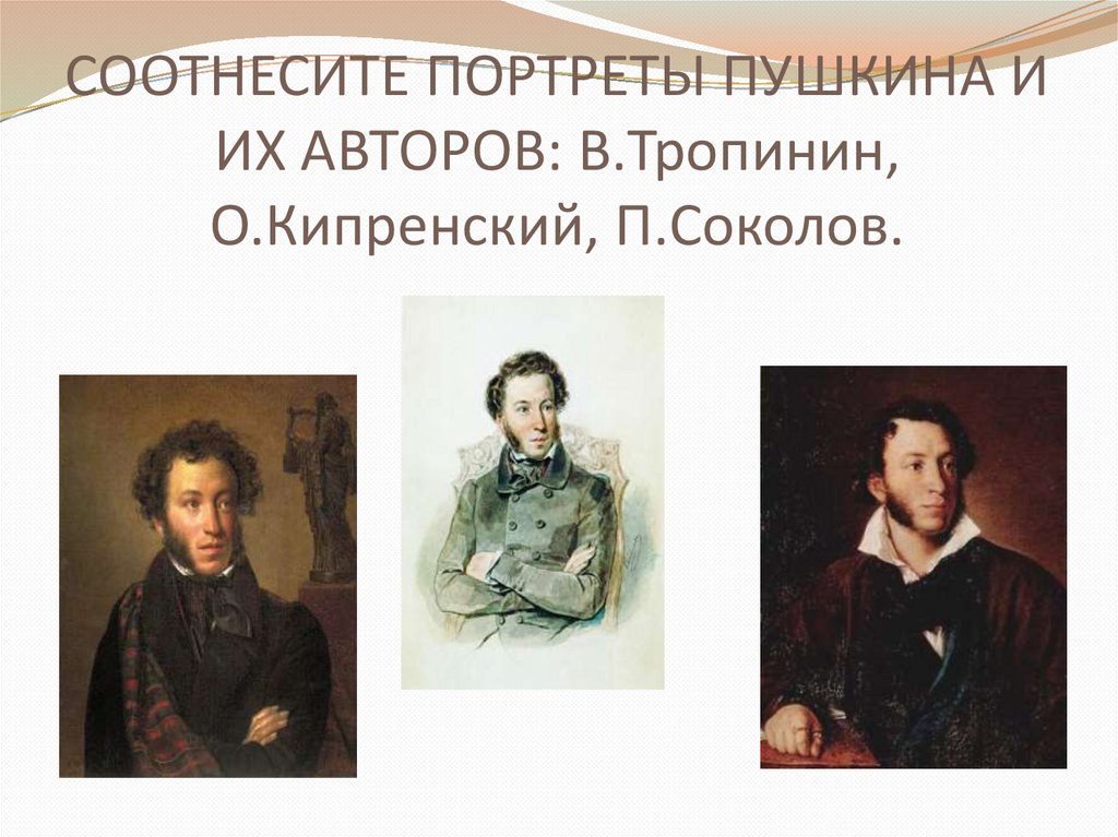 СООТНЕСИТЕ ПОРТРЕТЫ ПУШКИНА ИИХ АВТОРОВ: В.Тропинин,