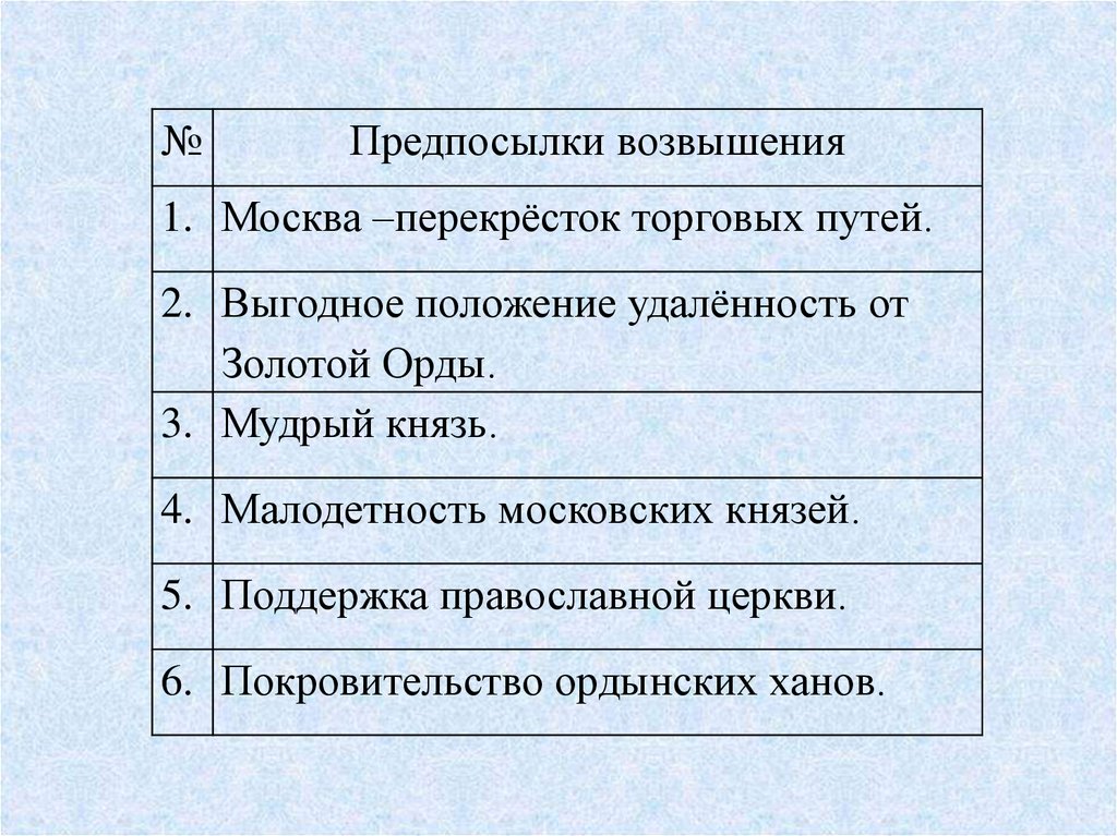 №Предпосылки возвышения