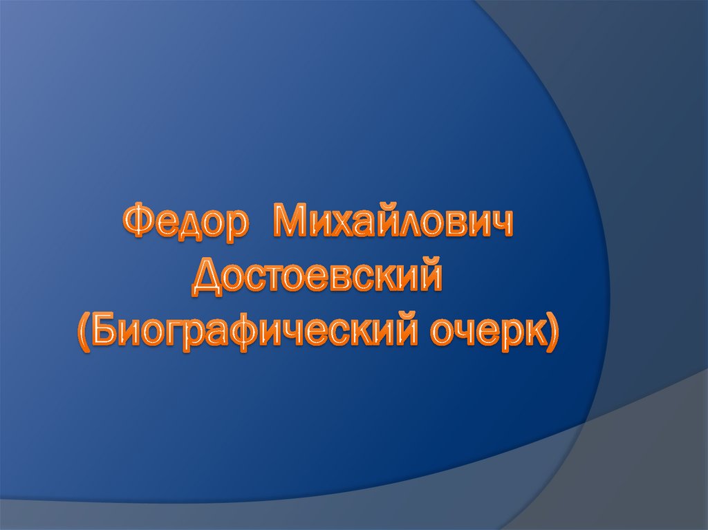 1. Федор Михайлович Достоевский (Биографический очерк)
